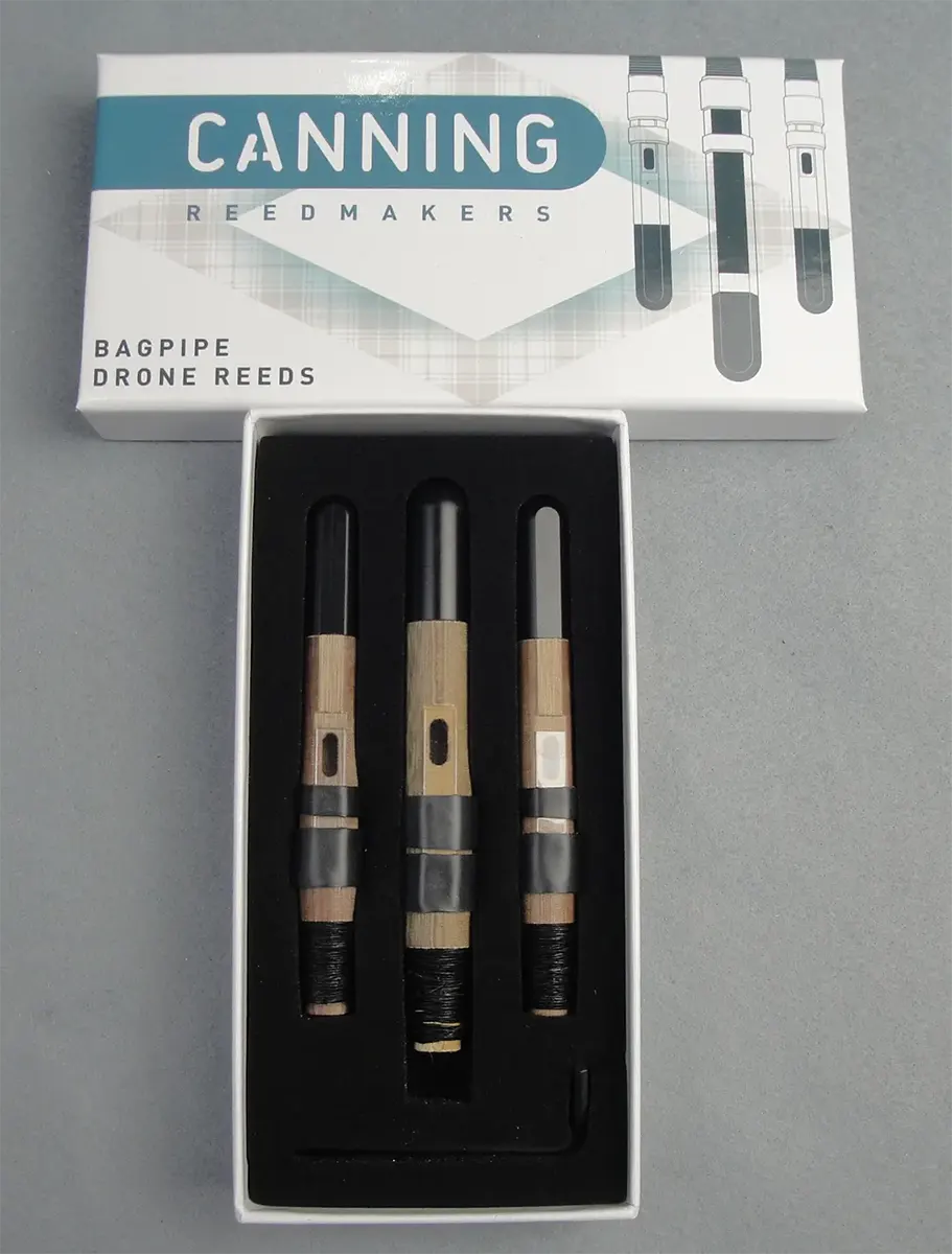 I’ve always enjoyed the slightly more refined and air efficient Canning tenor drones. They are also quite reliable in terms of the tenors striking in with minimal squealing. I use these with our boys at St. Andrew’s College for this reason. These reeds can be adjusted using the rubber bridal. (The tiniest movement of the bridle can make a substantial difference!) The nosecone of the reed is equipped with a grub screw. Moving the screw towards the end of the reed makes the drone top tune lower on the pin. Moving the screw towards the body of the reed makes…