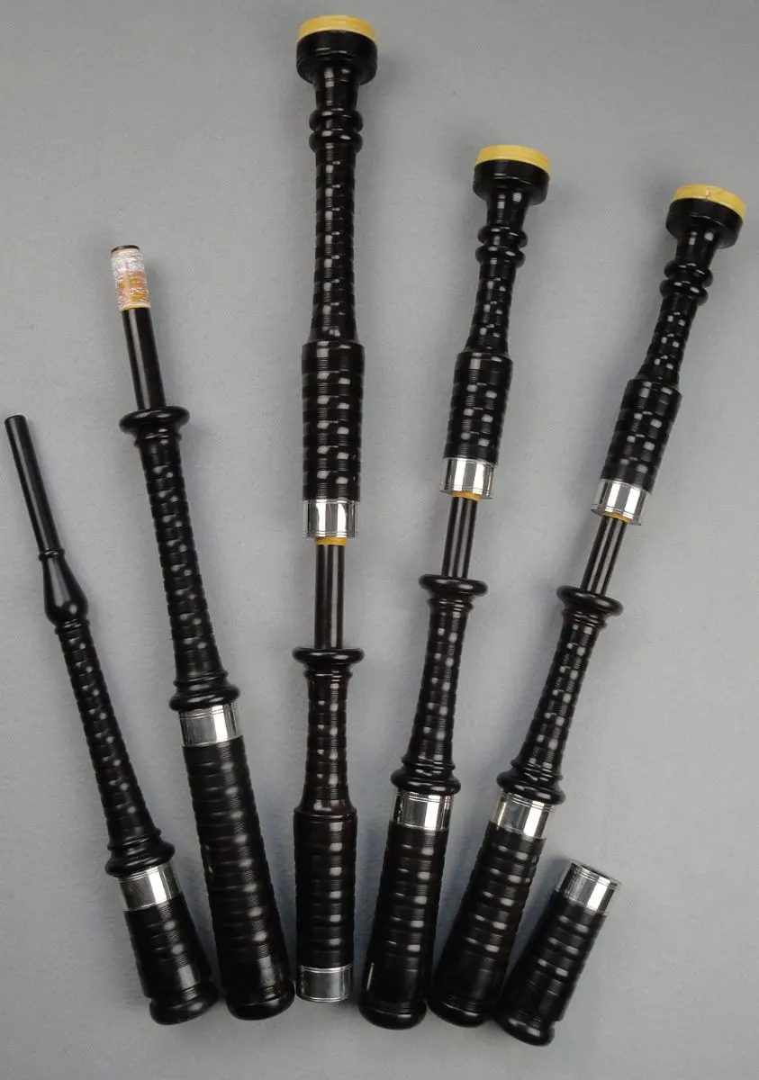 SOLD – This is a remarkable set of Henderson pipes made of cocuswood, likely around 1920. The projecting mounts are wood and the ferrules are nickel. Sometime in the 1990s the ivory drone caps, which apparently were badly cracked, were replaced with artificial ivory. So the great advantage in this bagpipe, aside from its tone, […]