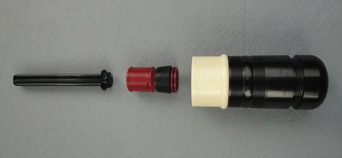 This combination valve/watertrap installs into the blowpipe stock easily using a tool provided. The valve negates the need for a clacker valve on your blowpipe. The device also stops moisture from dribbling into the bag. Remove your blowstick and dump it out when you’re finished playing. It’s not as effective as a tube trap or a desiccant system, but for the casual player it’s convenient and all they need for moisture control. Drone stock shown in the picture is not included.